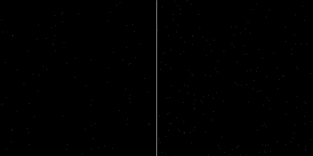 To show the growth in number of these outlying "hot" pixels, Figure 5 plots in white the pixels whose values are four or more standard deviations above the mean (in a quadrant of the crop used to generate Figure 4) for two different exposure times.